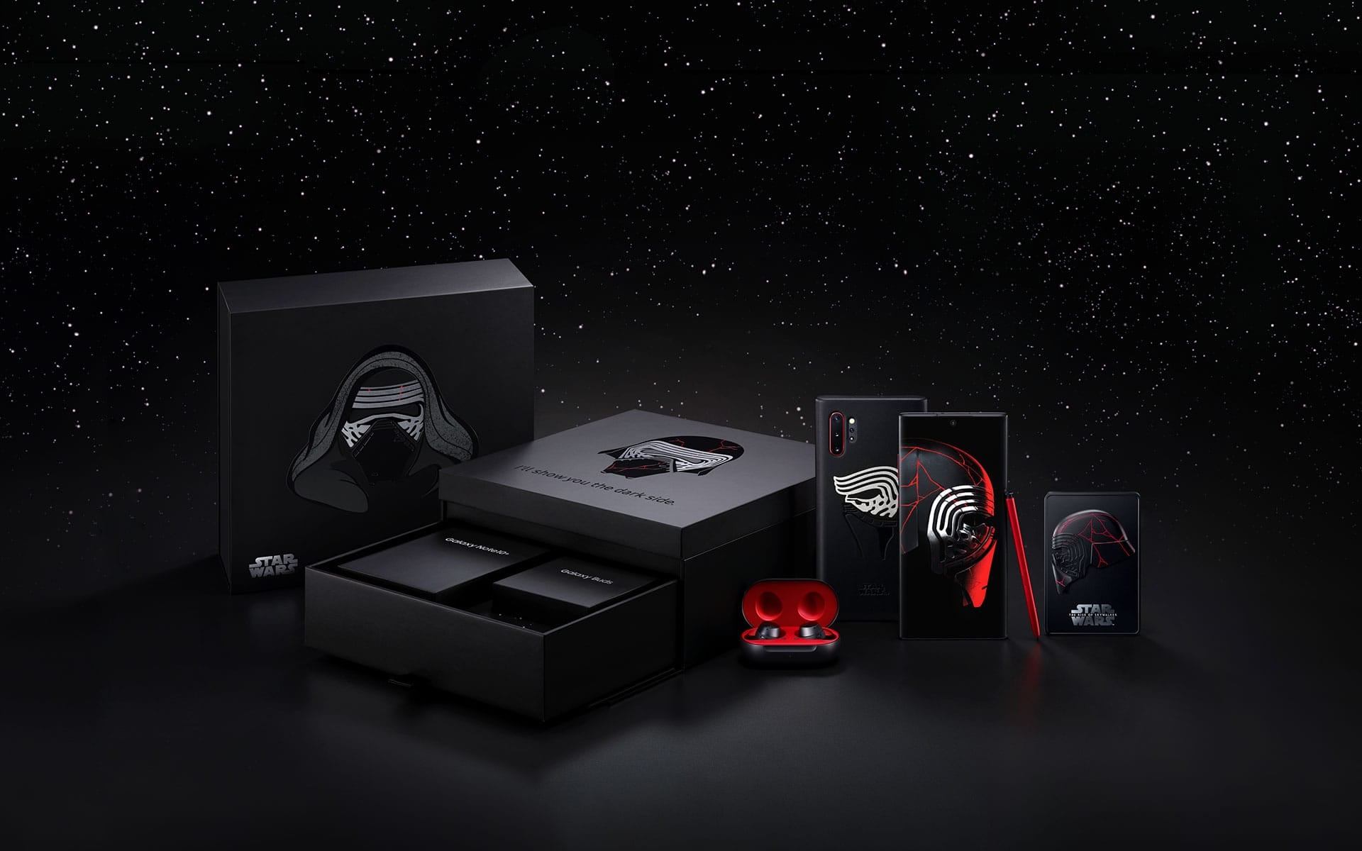 Сложно не отметить, что набор выполнен довольно гармонично, под лимитированную серию даже сделали новую оболочку интерфейса. В комплект входит смартфон в эксклюзивной красно-черной гамме со стилусом ярко-алого цвета, кожаный чехол, беспроводные наушники Galaxy Buds и коллекционная карточка. Кроме того, упаковка тоже выполнена в стиле адептов темной стороны силы. Цена, конечно, способна вывести из равновесия даже джедая – 99 тысяч рублей на момент написания статьи.